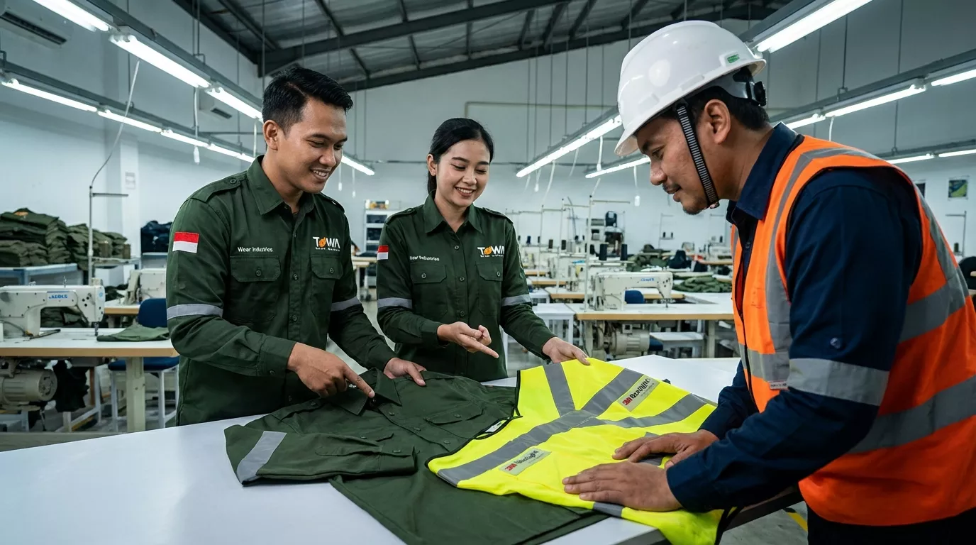 Pembuatan kemeja seragam & wearpack safety yang mematuhi standar keselamatan kerja.