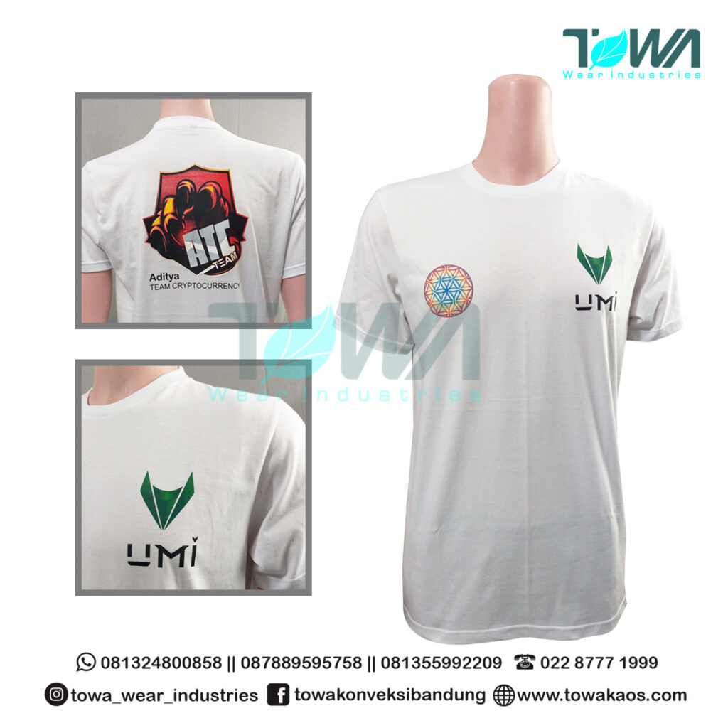 T-shirt Baju Kaos Oblong Seragam UMI Cotton Combed 24s Putih Bahan Katun Custom Sablon Plastisol CMYK/Separasi