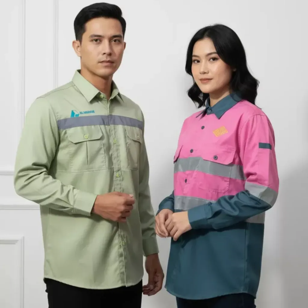 Kami memproduksi kemeja kerja standar industri, kuat, fungsional, nyaman, sesuai kebutuhan operasional perusahaan.