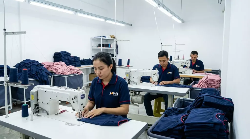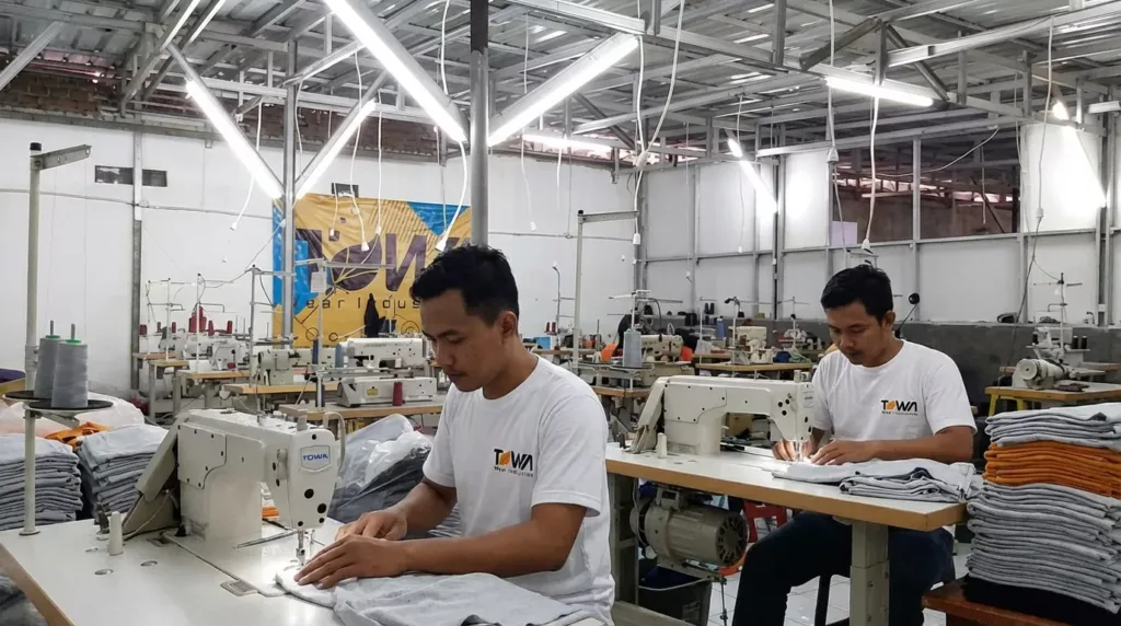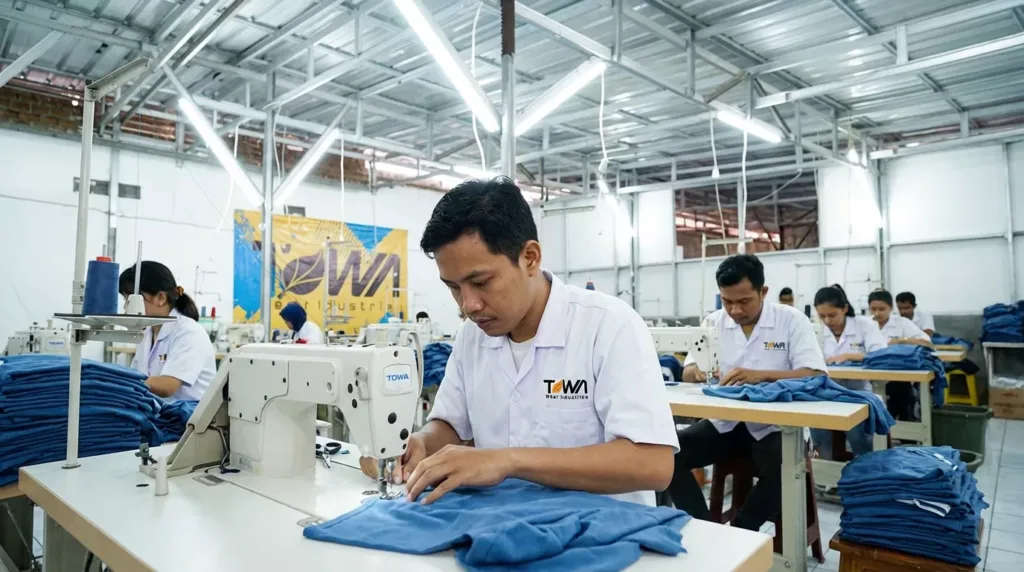 TOWA fokus pada produksi seragam kerja, safety wear, dan apparel industri yang mengutamakan fungsi, bukan sekadar tampilan.